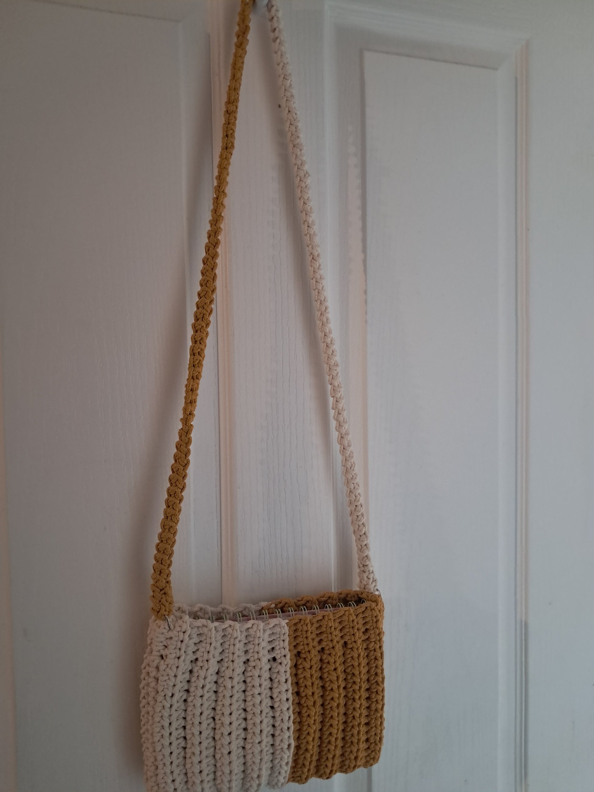 This handmade crochet macrame cord bag combines style and functionality. The intricate design adds a unique touch to any outfit, while the durable cord ensures long-lasting use. Perfect for carrying your everyday essentials, this bag is a must-have accessory for any fashion-forward individual.